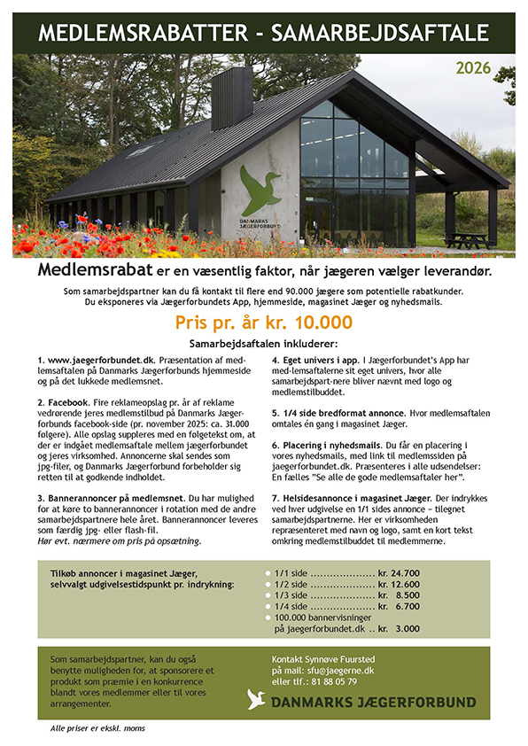 Samarbejdsaftaler Læs mere om at blive samarbejdspartner og få adgang til over 90.000 jægere via jægerforbundets medier. Se vores medlemsaftaler her. Kontakt Salgschef Synnøve Fuursted sfu@jaegerne.dk