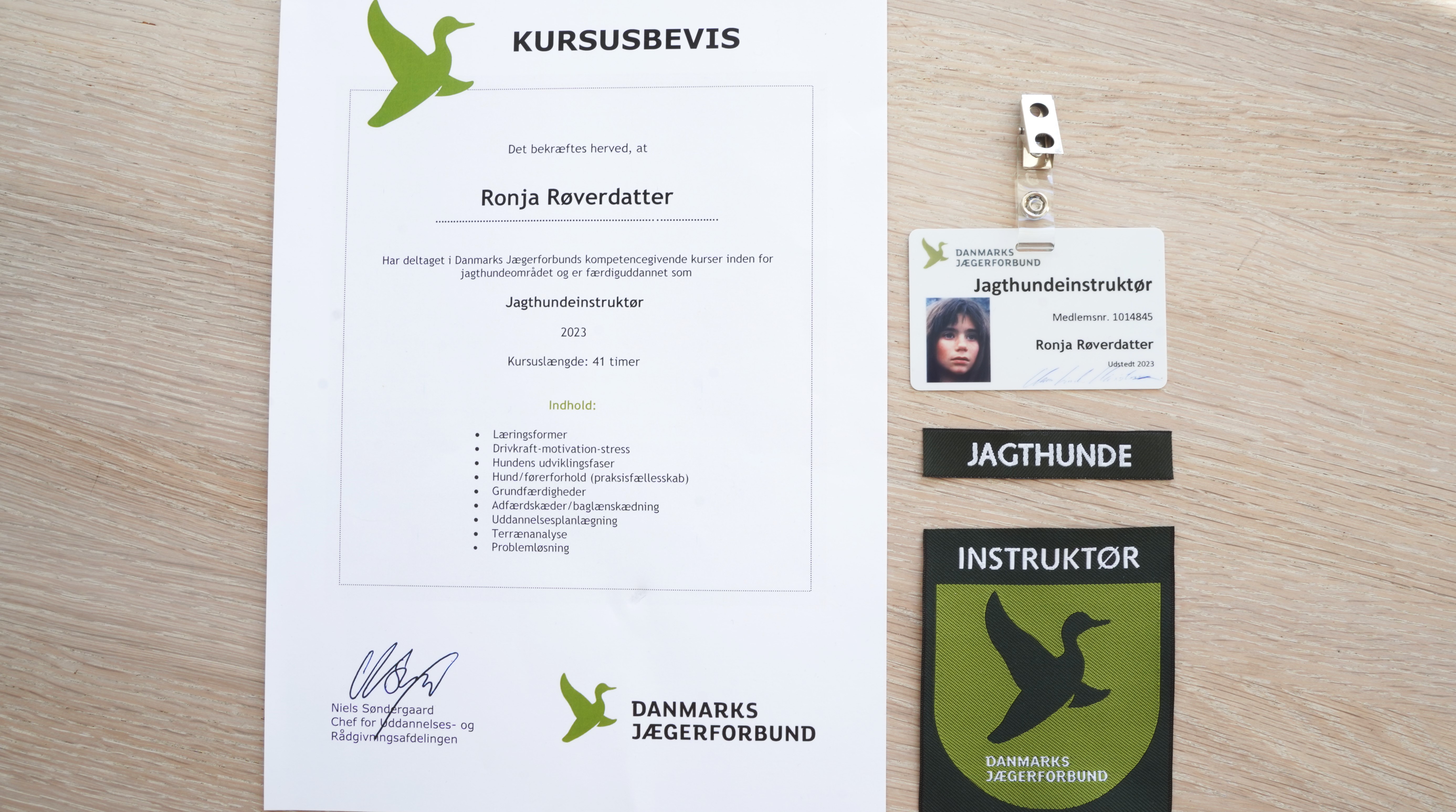 - Jagthundeinstruktør del 1, teoretisk del: Teoretisk kendskab til, hvordan hunden lærer, hundehjernens opbygning og hvilke læringsformer, der indgår i jagthundens uddannelse.