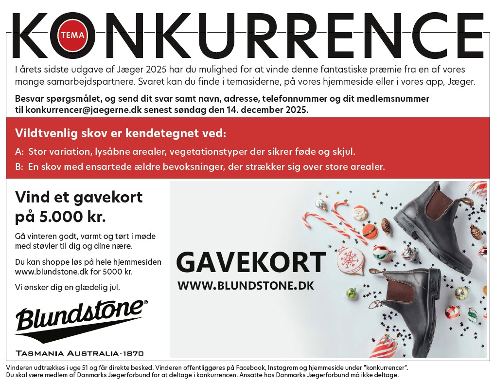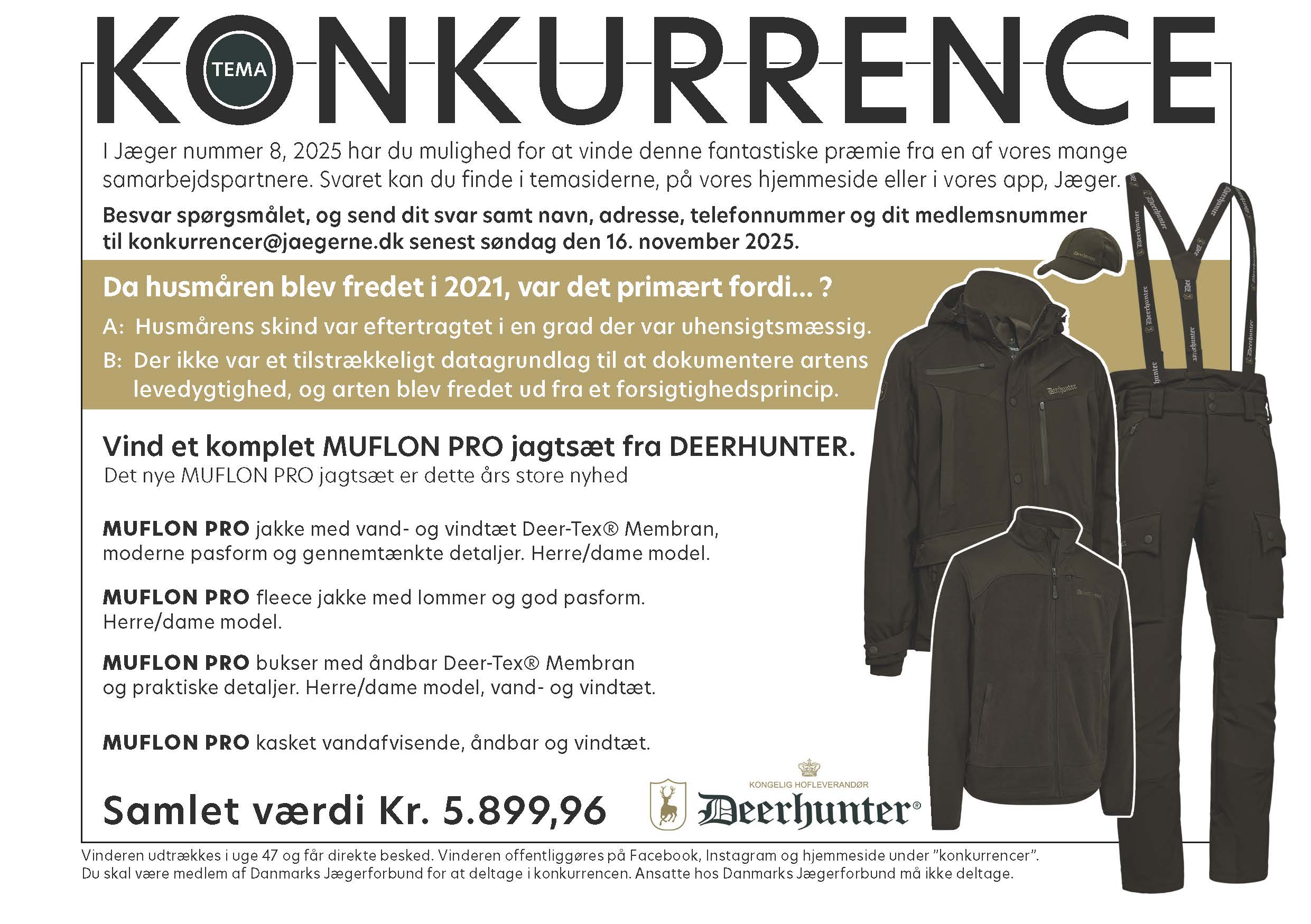 Det eneste, du skal gøre, er at besvare spørgsmålet herunder og sende dit svar samt navn, adresse, telefonnummer og medlemsnummer til konkurrencer@jaegerne.dk inden søndag den 2. februar 2025.