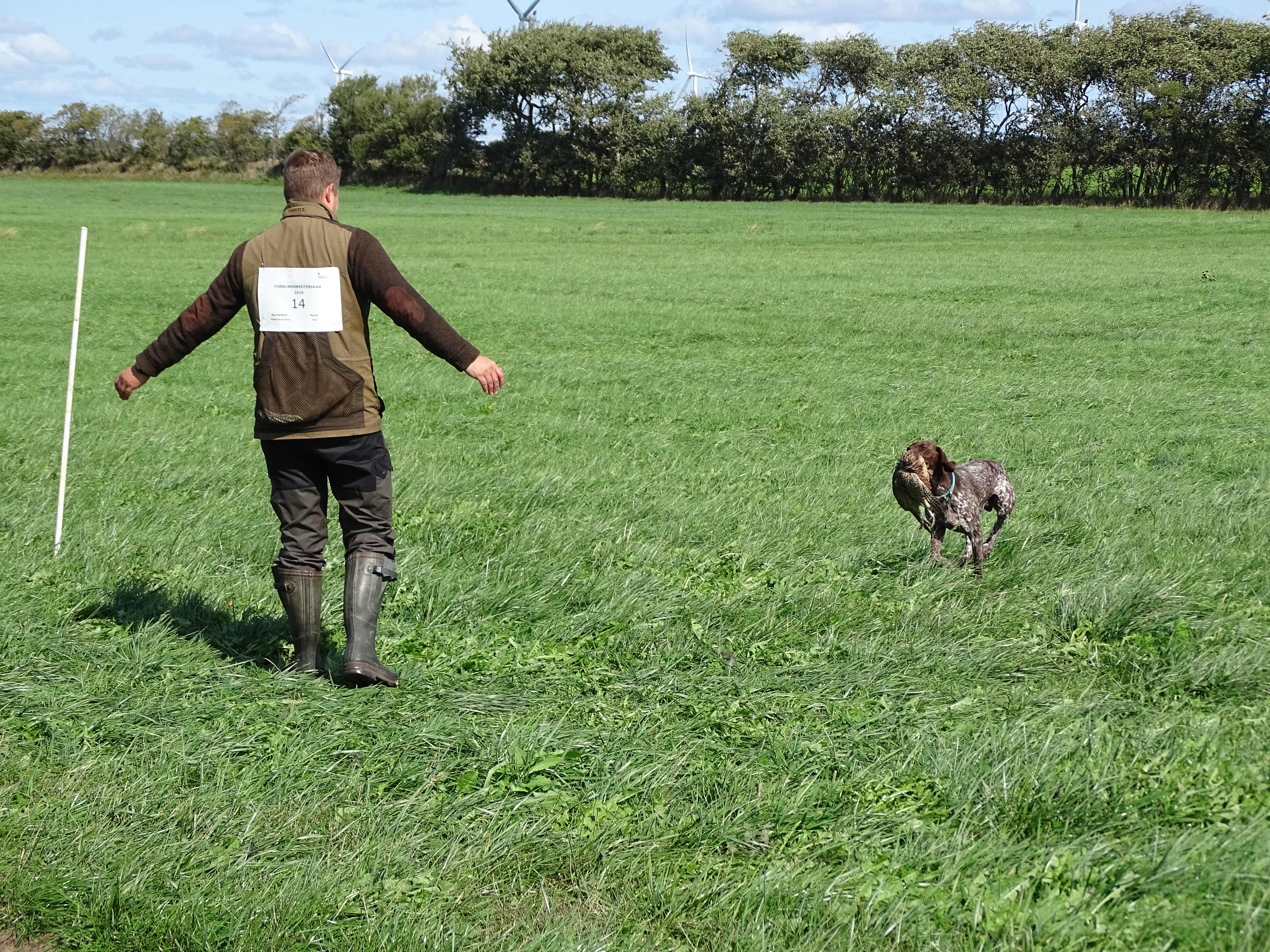 Der er et gammelt ordspil der siger, at førerens nervøsitet går gennem linen ned i hunden. Dagens oplevelse kom på vandbanen. En hundefører havde netop sendt hunden afsted på den første af de udlagte ænder, da telefonen pludselig ringede i jakkelommen. Rolig og fattet tog hundeføreren telefonen og efter kort ordveksling blev der sagt, ”nej nej du forstyrrer ikke, jeg er bare ude og træne hund”, så ingen nervøsitet at spore her ved hverken hund eller fører. Endnu engang tillykke til vinderne, til alle deltagerne med udtagelsen og ikke mindst en kæmpe tak til Hjallerup jagtforening for en fantastisk dag i det nordjyske.