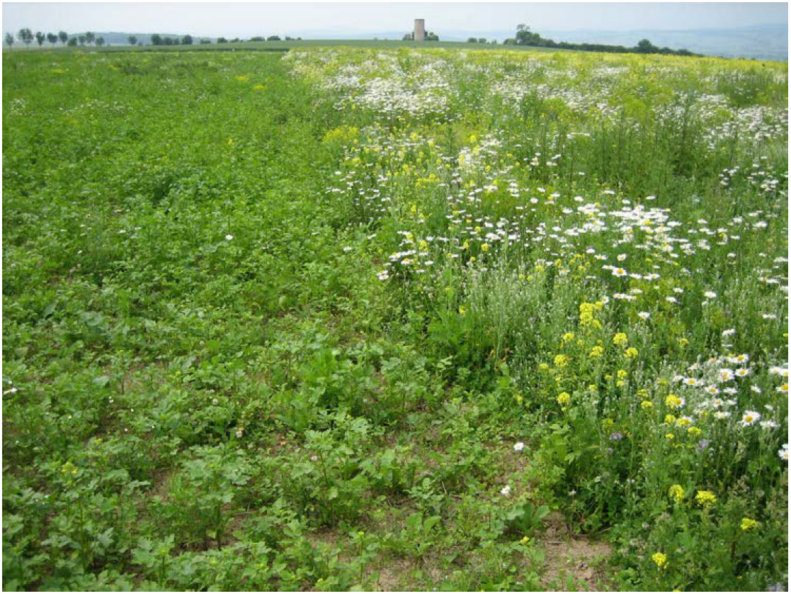 Da flere af arterne på listen er to eller flerårige, som fx cikorie der først blomstrer år to, kan du med fordel dele brak marken op i to eller flere marker, som du kører i toårig rotation mellem bestøverbrak og sommer-slåningsbrak. Så har du både dækning og redeskjul, men også en god kyllingebiotop på dit brakareal en praksis som bla. er brugt i det tyske agerhønseprojekt ved universitetet i Göttingen. Du får naturligvis kun en gennemsnitlig vægtningsfaktor på omkring 1,25, men til gengæld halveres dine omkostninger til etablering.