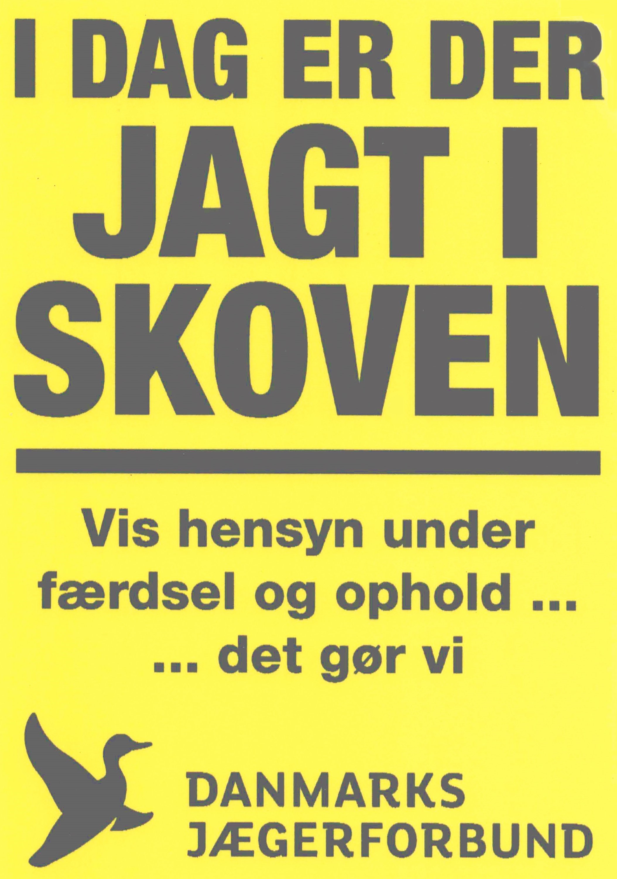 Derimod må man gerne informere publikum om, at der er jagt i skoven. Det kan f.eks. ske med jægerforbundets gule skilt, som vi har indsat et billede af under artiklen. Skiltet kan købes i jægerforbundets webshop og koster 45 kr.