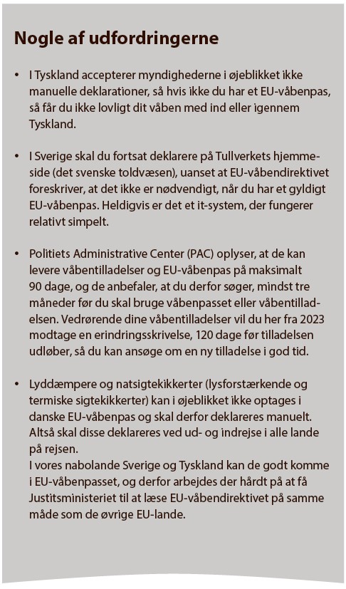 Med indførelsen af EU-våbenpasset slipper vi i dag for at deklarere skydevåben manuelt indenfor EU’s grænser, så længe nogle simple ting er opfyldt:
