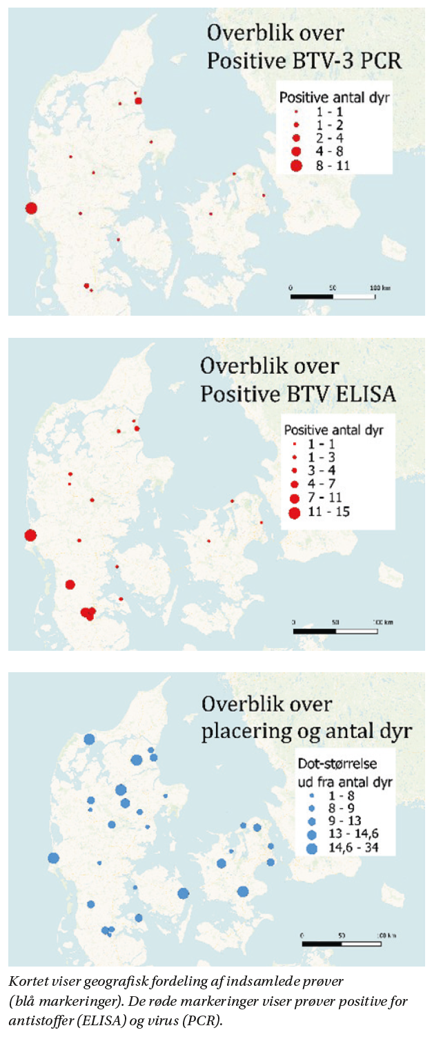 Takket være en stor indsats fra Naturstyrelsens lokale enheder og flere private jægere blev en prøveindsamling hurtigt sat i gang i efteråret 2024. Prøverne blev undersøgt for antistoffer med serologisk test specifik for BTV og under-søgt for BTV med PCR.
