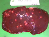 Krondyr, lever med spredning af bakterier med blodet (tuberkulose), der giver bylder spredt ud i hele leveren. Dyret er ikke egnet til konsum. Skal indsendes til undersøgelse på Vildtsundhed.dk